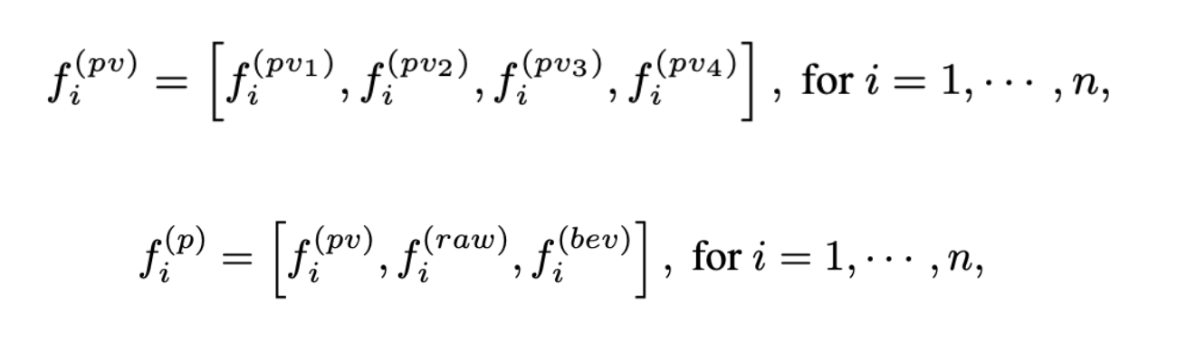 각 layer 당 구한 key point feature들을 모으고 거기에 추가로 raw데이터에 대한 set abstraction과 bird eye view에서 구한 key point feature까지 합쳐주어 최종적인 key point feature을 구성하게 됩니다.